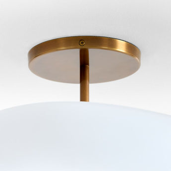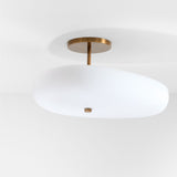 Como una escultura para el techo, nuestra lámpara de techo semiempotrada Pebble evoca la belleza de una suave roca de río. La pantalla de vidrio lechoso mate y los herrajes de latón bruñido se combinan para crear una apariencia cálida y moderna, mientras que su forma orgánica aporta una agradable sensación de calma a cualquier espacio.