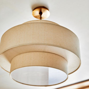 Con su suave pantalla de lino color crema y sus brillantes detalles en latón, nuestra lámpara de techo Reese es una pieza escultural y llamativa. Ideal para una habitación infantil, un espacio familiar compartido o una moderna habitación para niños grandes, esta lámpara de diseño vanguardista tiene forma de tambor rodeada por una singular pantalla redondeada. Su diseño discreto queda especialmente bien en dormitorios con literas o camas altas.