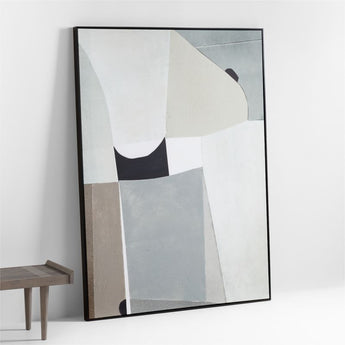 Abstract shapes in grey, taupe, white and black structure a neutral patchwork in our exclusive giclée reproduction. Added paint and layered tissue provide dimension and texture similar to the original mixed-media composition. For a gallery-worthy display, we've installed the print in a slim black floater frame. With its subdued palette and intriguing shapes, this print complements any modern room with its contemporary aesthetic.