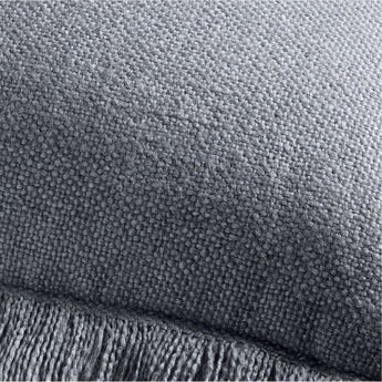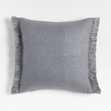 An irresistibly soft and slubby weave gives this throw pillow a relaxed look and feel that you'll want to snuggle up with every day. The inclusion of silky viscose adds a sophisticated sheen to the organic beauty of sustainably sourced linen fibers. Yarn-dyed smoky blue, the fringed pillow looks chic and casual tossed on a sofa, armchair or bed-especially paired with the matching throw blanket. Our exclusive pillow includes your choice of a plush feather-down or lofty down-alternative insert.