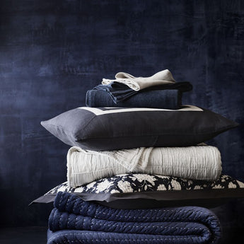 This airy all-season blanket layers of gauzy, open-weave organic cotton. Stitched into an organic pattern of rectangles, the smocked blanket offers depth, texture and irresistible softness. We especially love draping the natural beige blanket at the foot of a bed dressed in a tonal cream and white palette, or using it to tone down bright bedding.