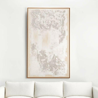 Formas grises texturizadas revolotean sobre una nube blanca para crear una composición etérea y abstracta con una sensación de movimiento y profundidad. Las capas construidas y el espacio negativo estratégico le dan una atmósfera brumosa a la obra. Pintada a mano sobre lienzo para resaltar las fibras naturales, nuestra reproducción se presenta en un marco de madera con acabado mate. When Winter Begins es exclusivo de Crate and Barrel.