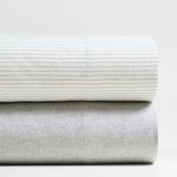 Acomódate con nuestra colección de ropa de cama de franela de algodón orgánico. Tejida con una textura aterciopelada, este juego de sábanas ofrece una suavidad irresistible. Las finas rayas en gris y blanco nítido evocan un pijama a medida para un look clásico. Combina las sábanas con el edredón y las fundas lisas a juego o combínalas: el gris jaspeado sutil combina con todo.