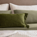 Crea una cama moderna con estas fundas de almohada de cáñamo en un fresco tono verde salvia que ofrece un toque neutro y sofisticado. Tejida con fibra de la capa exterior de una variedad benigna de Cannabis sativa, nuestra ropa de cama de cáñamo es increíblemente suave y ligera al tacto. Su tejido naturalmente transpirable te mantiene fresco y cómodo durante toda la noche. Este sereno juego de fundas de almohada combina a la perfección con el resto de la ropa de cama colorida y neutra de nuestra exclusiva colección de cáñamo.