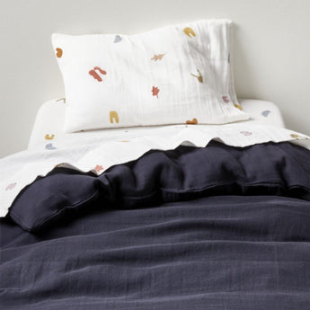 El moderno y pictórico diseño de nuestro juego de sábanas para niños pequeños "Animales del Bosque" transforma las formas abstractas en una adorable colección de criaturas juguetonas y hojas caídas. Con una paleta de colores dinámica y de género neutro, está hecho de gasa de algodón 100 % orgánico para máxima suavidad y transpirabilidad. Añade la colcha a juego para completar este look tan divertido.