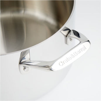 Nuestra exclusiva colección de utensilios de cocina ha sido examinada minuciosamente en cada etapa para brindarle la calidad de reliquia y el aspecto refinado que su cocina merece. La construcción de cinco capas de la olla recubre el núcleo de cobre EvenCook Core® con capas de aluminio y acero inoxidable para un control preciso del calor y resultados profesionales. Con el logotipo de Crate & Barrel estampado, las asas ergonómicas son cómodas y equilibradas, y están aseguradas con remaches de perfil liso para facilitar la limpieza. Ideal para cocinar a fuego lento y hervir, esta olla le espera para preparar deliciosas sopas, guisos y caldos caseros.