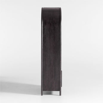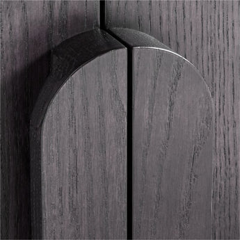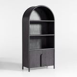 The traditional bookcase takes a contemporary turn in Annie. Made of solid oak and oak veneer with a warm charcoal finish, the bookcase showcases a rounded silhouette. Bentwood poles flow a continuous arc from leg to leg, framing open shelves and a storage cabinet with flat-front doors that show off the wood grain. Cleanly integrated into the arcing design, long, rounded pulls open to reveal one adjustable shelf. On its own, the bookcase is a stylish refresh to office, library or living room storage. Or maximize Annie's flowing lines by combining the bookcase with the coordinating media console to create a family room entertainment center.