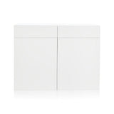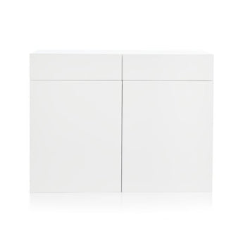 - El gabinete es de álamo macizo y madera de ingeniería con acabado blanco.