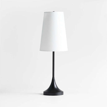 Rising from a sculptural tulip base, this graceful table lamp expands our Seguin lighting collection. A blackened steel finish contrasts with the crisp white linen shade for a graphic overall look that's an instant classic. Slim and refined, this table lamp fits perfectly on a nightstand or side table.