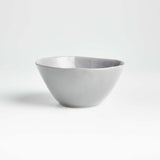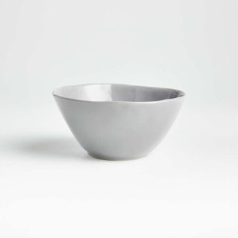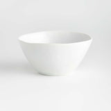 La porcelana contemporánea blanca representa una fusión de refinamiento y rusticidad. El perfil redondo y esbelto de este cuenco adquiere matices orgánicos con bordes de forma libre y una superficie finamente martillada que crea ondas de luz. Su base de cerámica sin esmaltar, lo suficientemente suave como para no dañar las mesas, le da a cada pieza un aspecto artesanal.