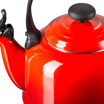 - Dale un toque clásico a tu cocina con este hervidor tradicional con silbato que te avisa cuando el agua está lista. El agua se calienta rápidamente gracias a su base ultrarresistente, apta para cocinas de inducción, mientras que el mango ergonómico y resistente al calor te permite verter el contenido de forma fácil y segura. Fabricado en acero esmaltado, añade un toque de color llamativo a tu hogar.