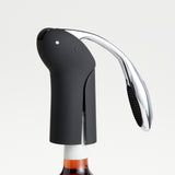 Sólo dos movimientos suaves y tres segundos son suficientes para abrir una botella de vino con este sacacorchos vertical. Diseñado para funcionar con todos los tamaños de botellas, este ingenioso dispositivo utiliza una espiral antiadherente y una palanca fundida para quitar y expulsar automáticamente cualquier tipo de corcho con facilidad. El mango ergonómico con empuñaduras de goma proporciona un agarre cómodo. También se incluyen un cortador de papel de aluminio y una espiral adicional.