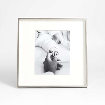 Nuestro marco de bronce antiguo cepillado añade dramatismo a la exposición de fotos con su diseño de caja de sombra y su gran paspartú blanco roto. Nuestro marco cuadrado de 8x10, exclusivo de Crate and Barrel, se puede colocar en la pared o sobre una mesa.