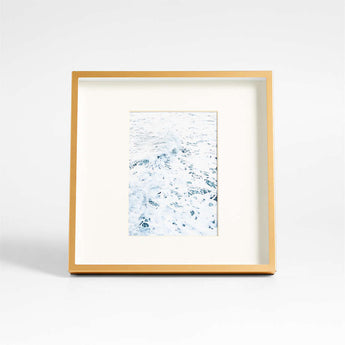 Nuestros marcos de latón cepillado aportan un toque de brillo y dramatismo a las exposiciones de fotos e impresiones con su diseño de caja de sombra y sus grandes paspartús en blanco roto. Exclusivos de Crate & Barrel, nuestros marcos de aluminio con acabado de latón cepillado se pueden exhibir en una repisa, una estantería o una mesa.