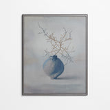 This evocative still life exemplifies the notion of perfectly imperfect. Set against an atmospheric backdrop of grey tones, the subject is a rustic, organically shaped vase filled with a bare yet expressively branched stem. Each print is framed in silver-finished wood and hand-embellished with texture for a fresh-from-the-easel look.