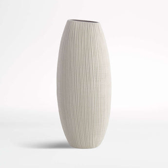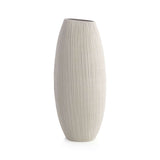 Las líneas texturizadas dan vida a la superficie de este elegante jarrón alto de porcelana color crema. Combínalo con nuestro jarrón abierto Alura en forma de anillo para un impacto escultural adicional.