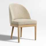 Las curvas recortadas de Ana y su generoso asiento acolchado te ofrecen espacio para relajarte. Tapizada con esmero en una tela resistente de suave textura en color marfil, los firmes cojines del asiento y del respaldo se apoyan en finas patas torneadas con un acabado natural. Ideal para una amplia gama de estilos de comedor, la silla de comedor Ana de madera natural es una exclusiva de Crate & Barrel.