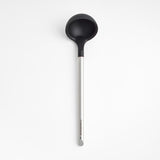 Sirva sopas, guisos y salsas con nuestro exclusivo cucharón de silicona negra y acero inoxidable. La silicona suave al tacto no daña las sartenes antiadherentes y resiste manchas, rayones y temperaturas de hasta 600 grados. El acero inoxidable pulido forma un elegante mango cilíndrico que ofrece un agarre firme y una apariencia profesional. Nos encanta cómo el refinado borde biselado remata el mango alargado con un detalle dinámico. Combine el cucharón apto para lavavajillas con los demás utensilios de exquisitas proporciones de nuestra exclusiva colección Crate & Barrel para un espacio de trabajo bien equipado, a la altura de cualquier desafío culinario.