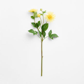 Our faux dahlia stem brings sunshine indoors. Unparalleled in quality and skillfully crafted to look just like the real thing, the cheerful spray features butter yellow blooms. Flowers in several stages of bloom and the plant's signature serrated leaves add even more realism to this tall fool-the-eye botanical. Display on its own or in a bunch for a fresh-from-the-garden look.