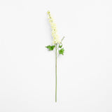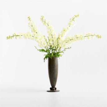 Named delphinium in honor of its dolphin-shaped flowers, this showy stem delights in the garden and indoors. Our faux version reproduces the distinctive spike made up of clusters of white blooms, accompanied by dainty buds and leaves that fool the eye. Lush, life-like and unparalleled in quality, the tall, architectural stem stands on its own or gathers in multiples in one of our floor vases for a lively display.