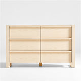 Light and bright in gorgeous washed ash and poplar wood, our Gemini 6-Drawer Dresser brings clean, simple storage to your nursery or kid's bedroom. Horizontal pulls across the face of each drawer enhance the modern, linear look. Skillfully crafted to last in solid ash, poplar and ash veneer, it's finished with subtle wire brushing to showcase the beautiful grain. Coordinates with other pieces in our Gemini Nursery and Bedroom Collection.
