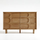Nuestra colección Wes amuebla la habitación de tus hijos con una combinación única de suaves curvas orgánicas y llamativos detalles geométricos en álamo y roble natural. La cómoda de madera Wes de seis cajones ofrece un almacenamiento práctico y elegante para ropa y mucho más. Sus modernos recortes crean tiradores ocultos para seis amplios cajones que mantienen los objetos esenciales organizados y ocultos. Con bordes suaves, esta cómoda de madera Wes de seis cajones se alza sobre patas de espiga extragrandes.