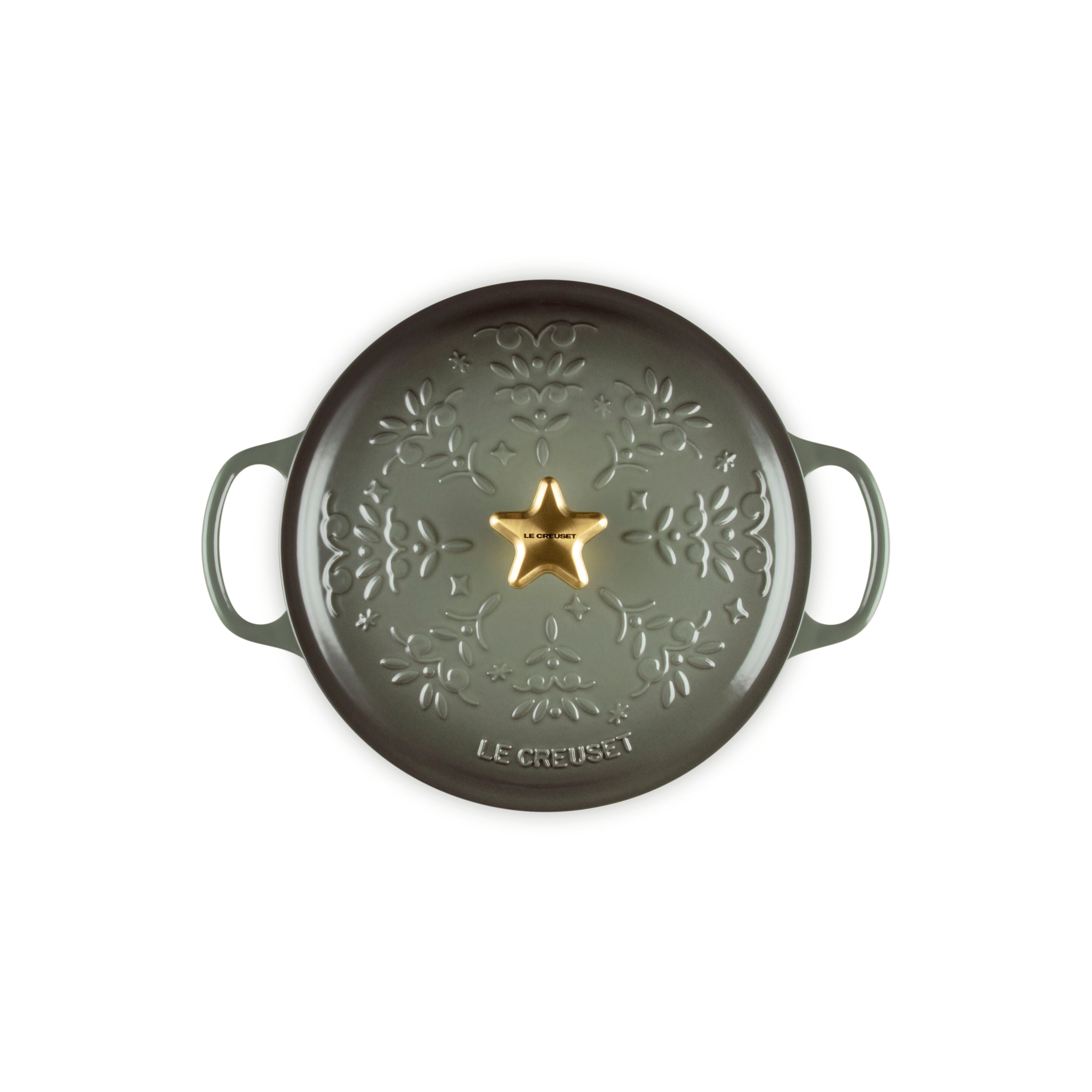 Le Creuset Cast Iron Christmas Round Casserole with Gold Star Knob and Tree Relief