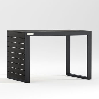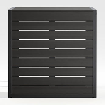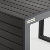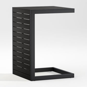 Easy, breezy Alfresco has a contemporary look that always feels fresh. Well-made with waterproof materials, it's designed to welcome warm-weather entertaining season after season. The side table's rustproof aluminum frame with faux wood slats that emulate the look of real wood is finished in a durable black powdercoat. Its ingenious, multitasking design converts from companion C-table to a lower-height side table, ottoman or extra seat.