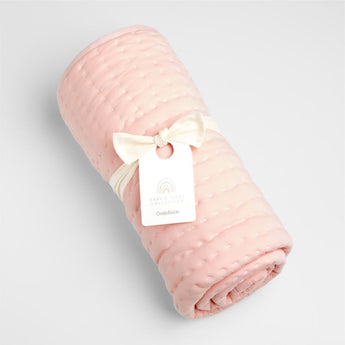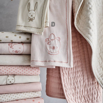 With the same coziness as your most coveted worn-in cotton tee, our supremely soft cotton heathered jersey makes a natural choice for baby bedding that soothes and comforts. In a light pink palette that feels fresh and modern, our baby crib quilt is made of organic cotton that's extra-gentle on sensitive skin. Kantha hand embroidery and hand quilting give the quilt plenty of texture without overwhelming the overall design. Pair the crib quilt with any of the colors and patterns in our Organic Heathered Jersey baby bedding collection that's made for mixing and matching to your heart's content.
