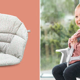 - Padded cushion adds comfort for your baby or toddler when using the Stokke® Clikk™ High Chair