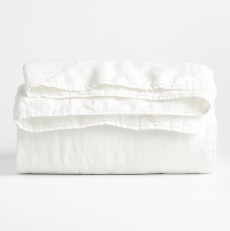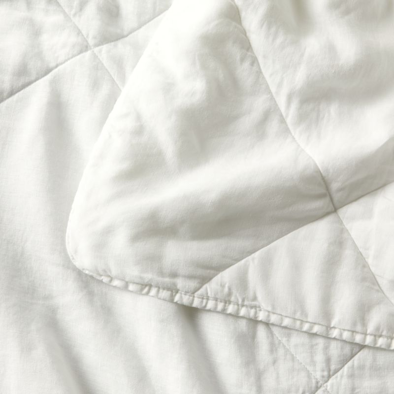 Quilted on the diagonal with oversized diamonds, these shams and quilts make the bed with a beautifully slouchy feel. Cloud-white sustainable linen weaves the laid-back bedding, an updated take on intricate quilting. We love the shams paired with the matching quilt or mixed with our other exclusive crisp white bedding for a relaxed, layered look.