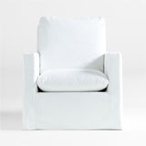 Ever at the ready for everyday life, this welcoming glider chair exemplifies designer Leanne Ford's relaxed aesthetic. Floating a pillow seat and a broad back cushion, the white chair invites settling in for reading, feeding and rocking to sleep. The casual slipcover is made of pure cotton that stands up to real life in a nursery or kid's room. Ever restores its effortlessly chic looks with a quick fluff of the cushions and swipe of the "comfort wrinkles." Pair with a matching ottoman to give your feet a much-needed break.