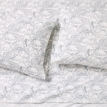 A trip to Australia before bedtimeor perhaps the North Pole? Our Explorer sheet set will spark dreams of faraway places, with its screen-printed illustrations of animals from around the world. Made of organic cotton percale, the sheets feel smooth and cool to the touch, and they get even softer with each wash. Pair with our Explorer quilt and pillow sham for a complete globetrotting look.
