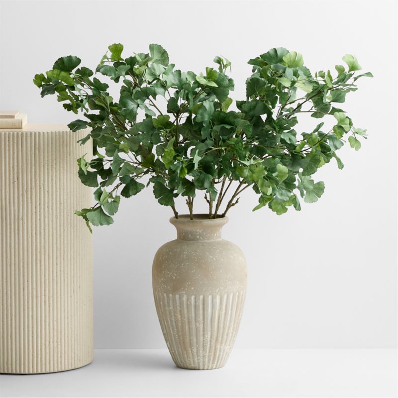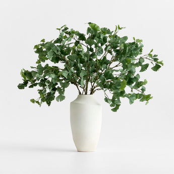 Enjoy the delightful foliage of gingko year-round with our faux branch. Lush, life-like and unparalleled in quality, the stem practically flutters with countless ruffled, fan-shaped leaves in subtle green hues. Tall and architectural, the branch stands on its own as a lively botanical display in one of our floor vases (sold separately).