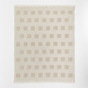 Shape up any room with the geometry, texture and stone tan hue of our Hi/Low Square Flatweave Performance Rug. Woven by hand, the rug's go-with-anything neutral color and durable synthetic fibers make it an easy, carefree addition to high-traffic areas like playrooms, bedrooms or shared living spaces. Raised-pile squares in contrasting weaves give the modern design its depth and dimension, and fringe at both ends softens its edges.