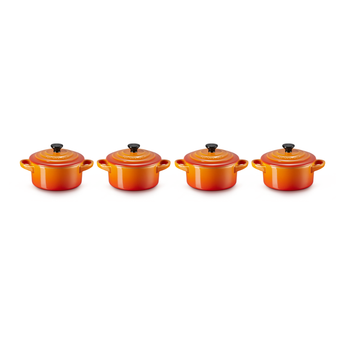 The Le Creuset Round Mini Cocottes Set of 4 is a charming collection ideal for individual servings of soups, stews, casseroles, or desserts. Crafted from durable stoneware, each mini cocotte provides excellent heat retention and even cooking results. The smooth enamel finish resists chipping, staining, and cracking, ensuring long-lasting quality. Each cocotte features a tight-fitting lid to lock in moisture and flavor. Available in a variety of vibrant colors, they add a pop of style to your dining table. Microwave, oven, and dishwasher safe, these mini cocottes combine practicality with elegance, perfect for everyday use or entertaining