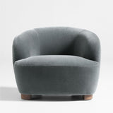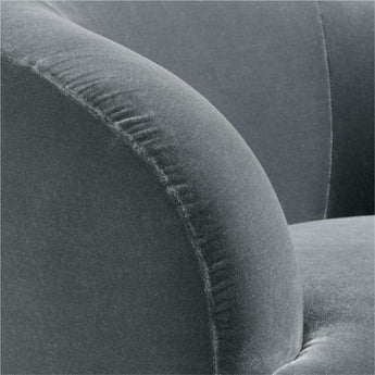 Sumptuous, voluminous and downright indulgent, Le Marché takes its cue from a 1930s Paris flea market find. Plush velvet in moody blue embraces every curve that flows the sculptural silhouette, with tight styling for a seamless look. Anchored with walnut feet slightly inset to follow the flow of the frame, the chair combines the elegance of a slipper chair with the barrel embrace of a clubby armchair. We especially love it in pairs.