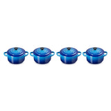 The Le Creuset Round Mini Cocottes Set of 4 is a charming collection ideal for individual servings of soups, stews, casseroles, or desserts. Crafted from durable stoneware, each mini cocotte provides excellent heat retention and even cooking results. The smooth enamel finish resists chipping, staining, and cracking, ensuring long-lasting quality. Each cocotte features a tight-fitting lid to lock in moisture and flavor. Available in a variety of vibrant colors, they add a pop of style to your dining table. Microwave, oven, and dishwasher safe, these mini cocottes combine practicality with elegance, perfect for everyday use or entertaining
