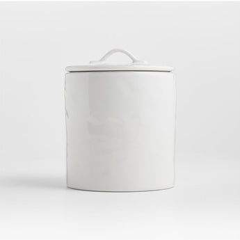 Made to complement our coveted Marin collection, this charming canister exhibits the same artisanal, organic lines. The display-worthy stoneware vessel glazed glossy white stores essential ingredients on the countertop or open shelving and cleans up easily in the dishwasher. A silicone gasket provides an airtight seal, while the pinched handle finishes the small canister with a graceful touch. To complete the look, pair the small canister with the matching medium and large canisters and our coordinating Marin dinnerware and serving pieces.