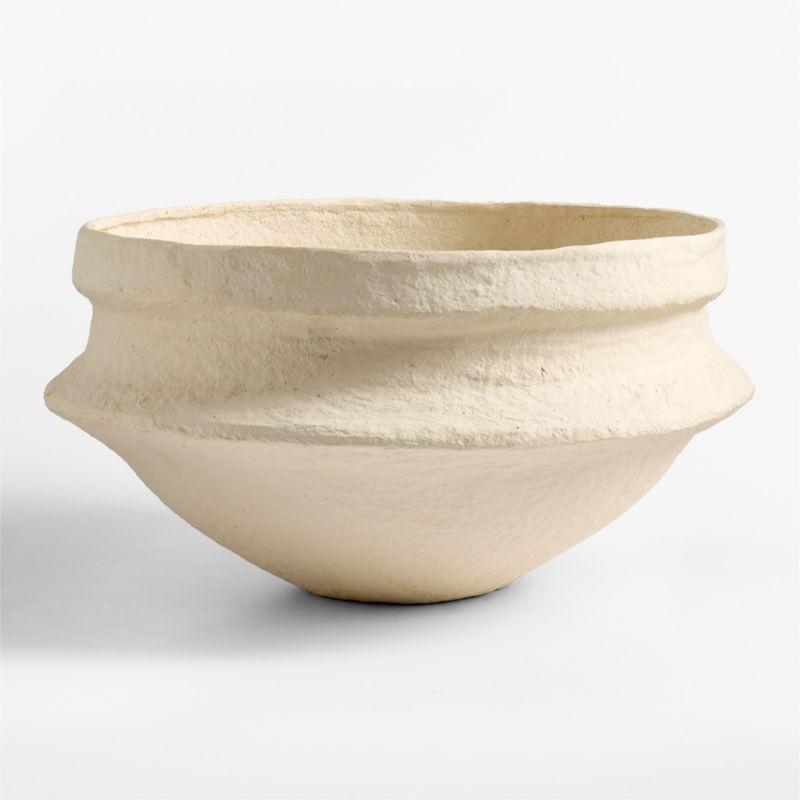 Our Marla collection's sculptural presence belies its light and airy construction. Skilled craftspeople apply recycled cotton pulp to a mold to create this textured, statement-making bowl. Organic curves and facets lend the bowl the look of an ancient artifact made modern by the go-with-everything matte cream finish.