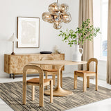 Channeling the look of an iconic example of modern design, our Nero dining table takes this modern classic in a more natural direction in solid white oak. A turned trumpet base sweeps the slender pedestal, supporting a pristine oval top rich with beautiful graining. A great choice for banquette dining, the Nero wood pedestal table comfortably seats four.