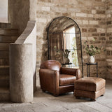 There's nothing like the comfort and sophistication of a classic club chair. Northmoor softens the contours of this timeless style for a chair that reinterprets tradition for the contemporary home. Covered in rich brown leather with a soft hand and aged aesthetic, the accent chair accentuates the rounded back and arm with elegant pleating and inset panel detail on the arm. Solid oak bun feet add old-time charm, while the substantial fiber- and down-filled seat cushion delivers indulgent comfort, especially when paired with the coordinating ottoman. Thanks to its petite proportions, Northmoor easily acclimates to a variety of settings-from library nook to bedroom retreat.