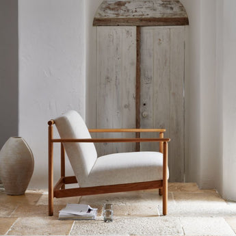 Pure Shaker-style construction meets the clean-cut cool of Danish Modern in our Ojai accent chair.  A modern classic, the chair attends to detail in mortise-and-tenon joinery and softly turned edges. The oak frame angles back the tight seat and back cushions for a comfortable sit, while the shaped armrests are contoured with a rounded touch. Polyester-linen upholstery complements with the opulent look and soft hand of chenille. Impressive on its own, we especially like our exclusive Ojai armchairs doubled up a pair.