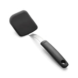 OXO's grey cookie spatula has a thin, flexible edge that glides easily beneath cookies and other baked goods, while the angled, non-slip handle keeps hands away from hot dishes.