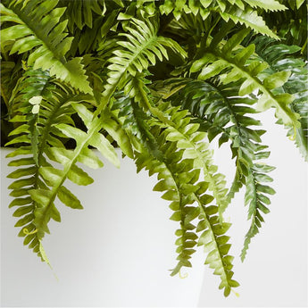 Our faux sword fern thrives anywhere in your home—no carefully calibrated lighting or daily waterings necessary. Life-like and unparalleled in quality, the vibrant hand-dyed green fronds overlap energetically in a lush display. The clean-curved ceramic pot takes a dip in bright white glaze to complete the fresh look. Ideal for bringing a spot of brightness indoors, our no-maintenance faux fern fits perfectly on a console or side table.