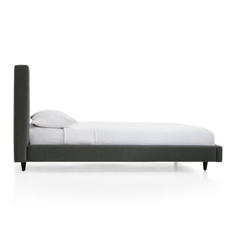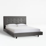 Our 1960s-inspired Tate collection recalls the timelessness of mid-century design with tailored profiles and streamlined shapes. Offered with a taller headboard, the bed's textural upholstery is punctuated with three rows of retro button-tufting. Streamlined, low platform design takes a minimal stance with dark brown tapered legs.
