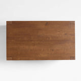 Crafted of solid white oak with a warm brown finish applied by hand, our Terra dining table celebrates the rustic beauty of wood. The legs intersect the slab top, showcasing the end grain for textural interest. Each piece of wood tells its own story revealed in unique tonal variations, knots and checking that occur naturally over time. We love the way these organic characteristics contribute to Terra's rustic authenticity and farmhouse appeal.