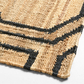 Inspired by tilework, our doormat recreates an elegant and organic coffered design in rugged jute. Black squares and concentric octagons stand out against the countless warm hues of the natural fiber. Handwoven by skilled artisans, the indoor/outdoor mat fits easily under most doors to adorn your porch, mudroom or entryway. We especially love the look of this doormat layered on a tile floor for a fascinating play of patterns.