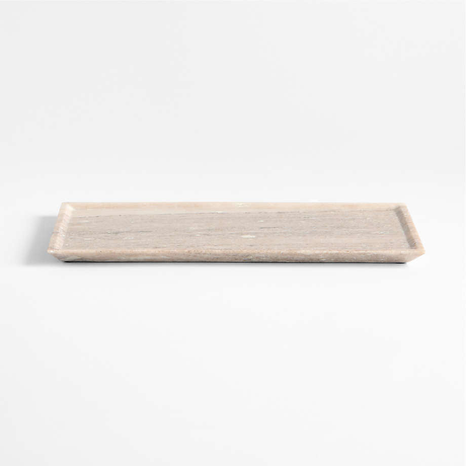 Inspired by the rustic warmth and organic beauty of central Italy, our Tuscan collection showcases softly neutral yet statement-making beige marble. Cut by hand and honed to a modern matte finish, each marble tray fascinates with subtle variations in hue, texture and veining. This elongated, low-profile tray provides a warm, luxurious backdrop for whatever it holds, whether candles and canisters in the bathroom or keys and mail on an entryway console. Pair the large size with the smaller versions for cohesive storage throughout a room.